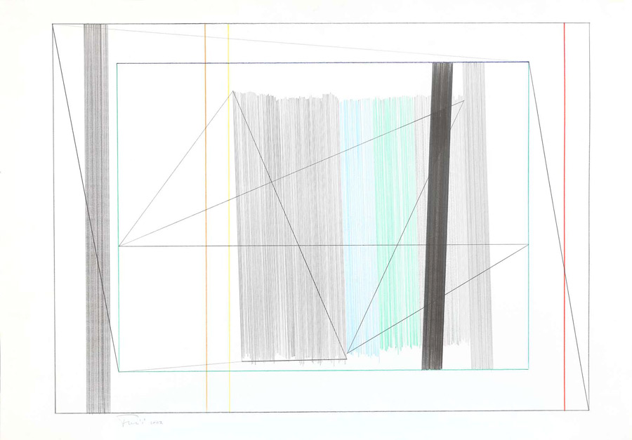 Sve te stilske crte radova izvedenih kistom na platnu možemo prepoznati i za ovu prigodu odabranoj seriji od trideset crteža većeg formata, ostvarenih olovkama u boji na papirnoj podlozi. U neformalnom razgovoru, umjetnik će ove vrlo dopadljive, ali precizionističke radove, opisati kao bliske srodnike ne samo istoimenog slikarskog ciklusa “Traseri prostora” (2003.g.) nego i recentnih skulptorskih ostvarenja poput “Grad blistav sred jutarnjih poljubaca” (2001./02. g.).