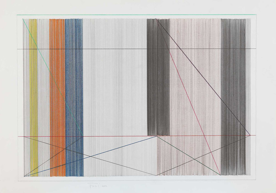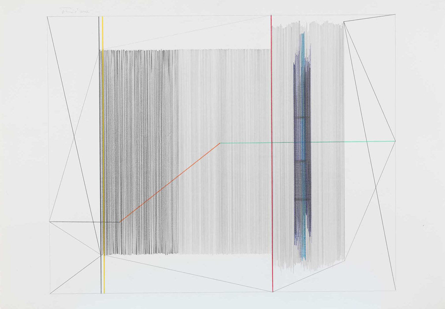 Sve te stilske crte radova izvedenih kistom na platnu možemo prepoznati i za ovu prigodu odabranoj seriji od trideset crteža većeg formata, ostvarenih olovkama u boji na papirnoj podlozi. U neformalnom razgovoru, umjetnik će ove vrlo dopadljive, ali precizionističke radove, opisati kao bliske srodnike ne samo istoimenog slikarskog ciklusa “Traseri prostora” (2003.g.) nego i recentnih skulptorskih ostvarenja poput “Grad blistav sred jutarnjih poljubaca” (2001./02. g.).
