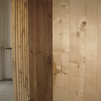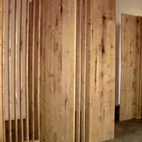 Prekinuti prostori, 2007. Prostorna skulptura koja obuhvaća 40 m² i satoji se od drvenih elemenata s fotografijama.